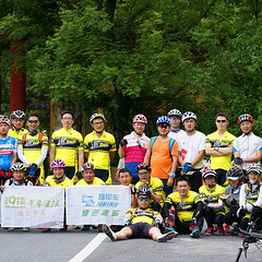 這個就是那時候西天目山門口集影。橙色雙肩包、白色袖套、帶了騎行鏡的那位就是我了。