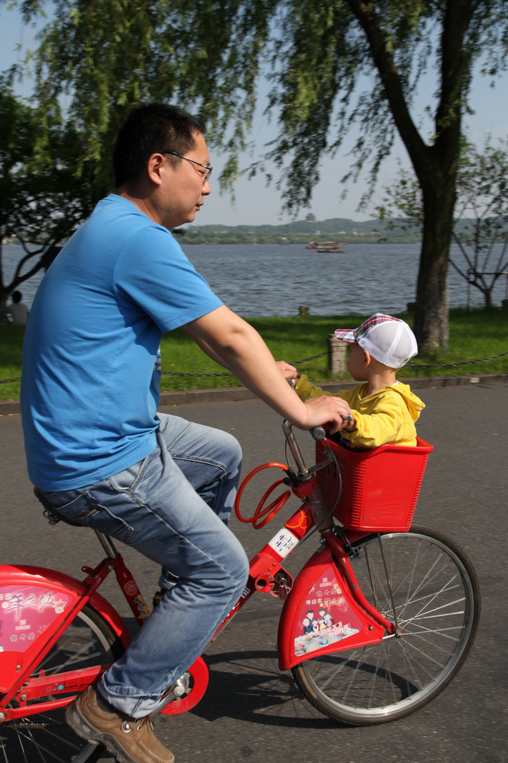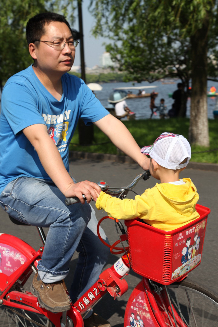 今天中午,在西湖邊,見(jiàn)一位年輕的媽媽將其小孩放在公共自行車的兜里,在馬路上行駛。萬(wàn)一出事,后果嚴(yán)重,安全切記切記。