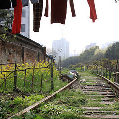 望江門外,南落馬營的三角道,廢棄的鐵軌旁的油菜花開了。今天星期天,孩子們在鐵軌上玩,他們象春天一樣,總會給人帶來希望和遐想。