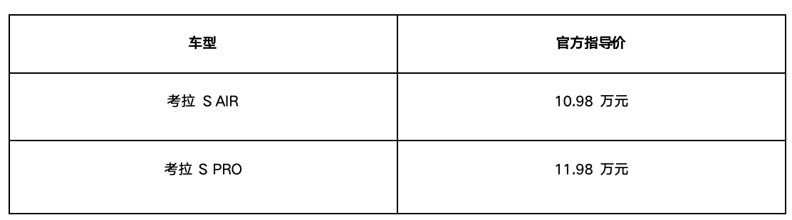 8月7日,北汽極狐考拉S正式上市,推出考拉S AIR、考拉S PRO兩款配置,官方指導價分別為10.98萬元、11.98萬元。10萬級的價格,全系標配寧德時代電池、500KM續(xù)航、電動側(cè)滑門、2820軸距大空間,考拉S成為年輕人第一輛純電SUV的city新選擇。