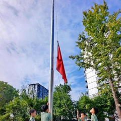升國旗、奏國歌、行注目禮,伴隨著莊嚴(yán)的國歌聲,神圣的五星紅旗冉冉升起,孩子們仰望著飄揚的旗幟,流露出對祖國媽媽無盡的愛意,也在心中悄悄種下一顆愛國的種子。