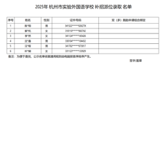 2025杭州市實驗外國語學校(初中部)補招派位錄取名單