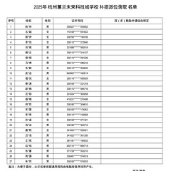 2025杭州蕙蘭未來科技城學(xué)校(初中部)派位補(bǔ)招錄取名單