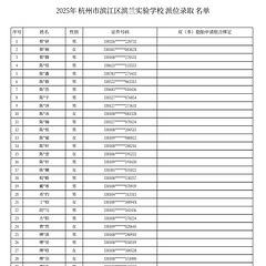 2025杭州市濱蘭實(shí)驗(yàn)學(xué)校派位錄取名單