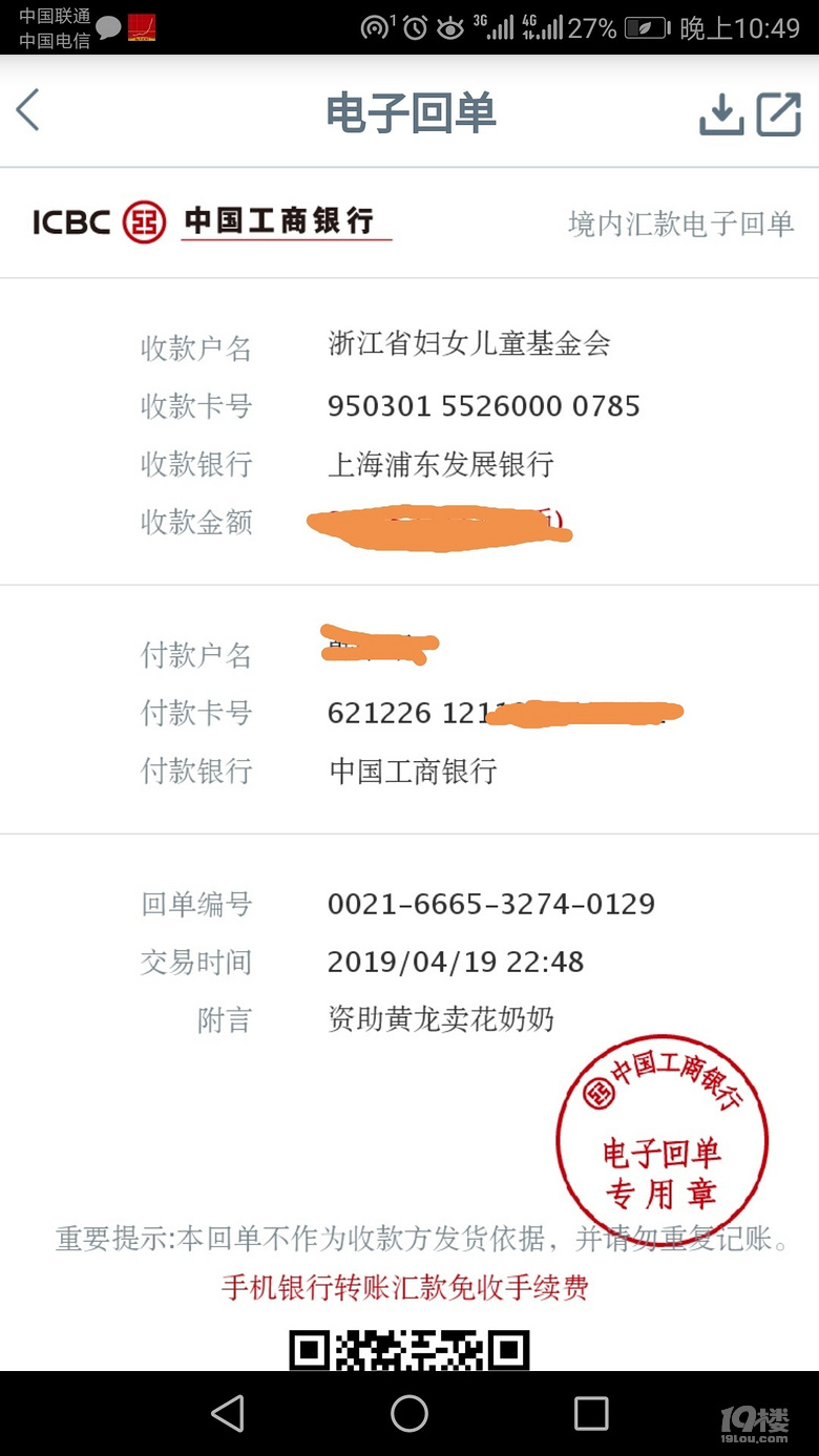 轉賬時請務必備注“資助黃龍賣花奶奶”信息,以確?铐椨猛。