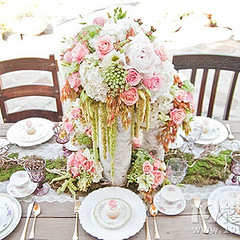 這場美不勝收的婚禮靈感看點之一在于新娘的裝扮,宛若仙女,沒有過分的矯飾,也省去了繁瑣的服飾,簡單清爽之余更顯靈氣閃動;ㄋ嚨脑O(shè)計運用了輕森系的風格,自然、唯美,粉色和綠色是整場婚禮的色彩基調(diào),餐具的設(shè)計更加偏向于鄉(xiāng)村風,和自然更加貼合。對于這樣一場別致的婚禮,你難道不心動么?
