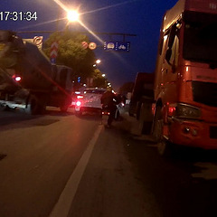 右側(cè)大貨車(chē),中間凱越,邊上還有一輛面包車(chē)。