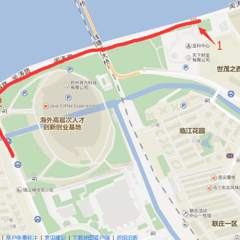 以前也是不賭車的,堵車發(fā)生在設立了亞科中心那邊支路-聞濤路路口的紅綠燈后(圖中1處),目前是一到8:30 堵得很