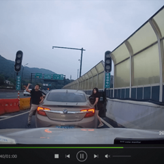 因?yàn)楹⒆永掀旁谲嚿,不想因(yàn)檫@點(diǎn)小事鬧出事故,于是經(jīng)過(guò)他車旁時(shí)送了他一個(gè)“國(guó)際慣例”,上了匝道,這司機(jī)猛踩油門超車變道上來(lái)別到我車前,在高架入口前直接停車,下車過(guò)來(lái)罵罵咧咧,嘴里一口一個(gè)“尼瑪批”,我沒(méi)有一個(gè)臟字,直言你們先別車。他老婆一起下車,一口一個(gè)沒(méi)素質(zhì),臨走還要丟個(gè)水瓶子,你有本事就丟我車上啊,丟地上算什么本事?要不是因?yàn)榕畠汉秃⒆釉谲嚿,怕女兒被嚇到,我就直接抽出工作用?0CM釘頭錘敲過(guò)去先了。。