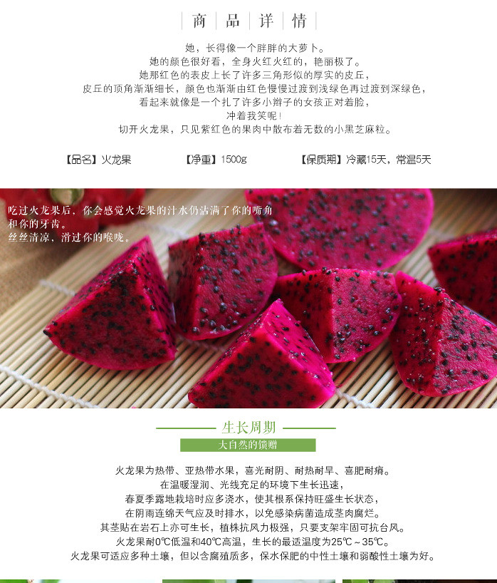紅心火龍果,果肉鮮艷,甘甜可口。僅限江浙滬包郵, 每天14點(diǎn)的訂單當(dāng)天發(fā)貨,默認(rèn)匯通快遞~~