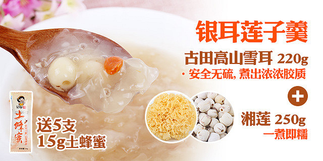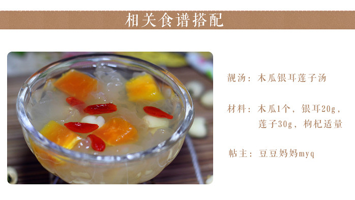 銀耳220g,蓮子250g,銀耳出膠質(zhì)快,膠質(zhì)濃稠,濃濃膠原蛋白,蓮子口感粉,一煮就很糯~~買(mǎi)就送35g冰糖和5支土蜂蜜,24小時(shí)內(nèi)發(fā)貨,全國(guó)包郵,默認(rèn)天天快遞