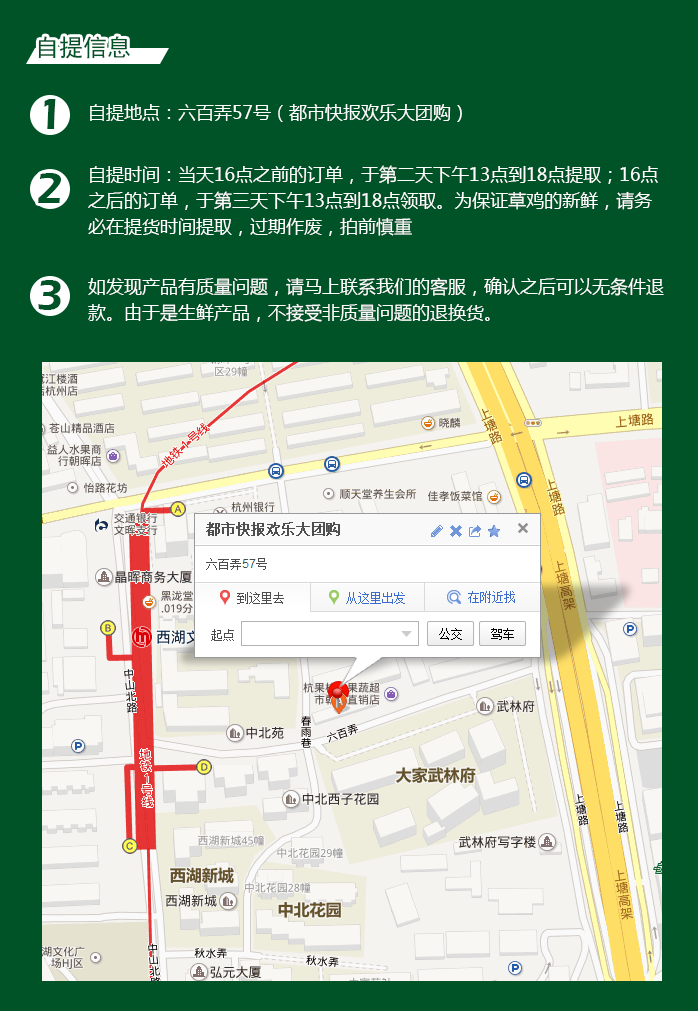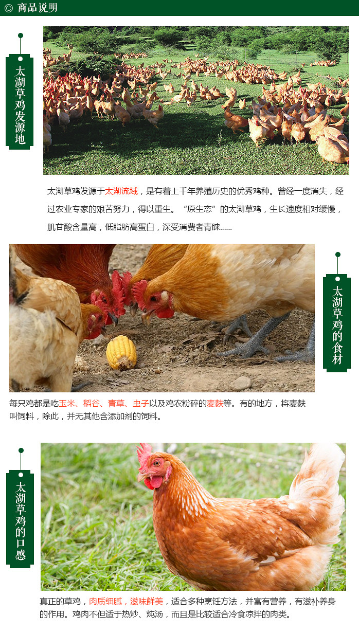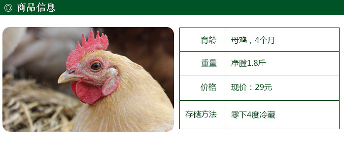 太湖流域傳統(tǒng)特色品種,雞味濃郁,適合白切、燜燉。育齡4個月,母雞,凈膛1.8斤。自提地點:六百弄57號(都市快報歡樂大團購),自提時間:當(dāng)天16點之前的訂單,于第二天下午13點到18點提;16點之后的訂單,于第三天下午13點到18點領(lǐng)取。為保證草雞的新鮮,請務(wù)必在提貨時間提取,過期作廢,拍前慎重