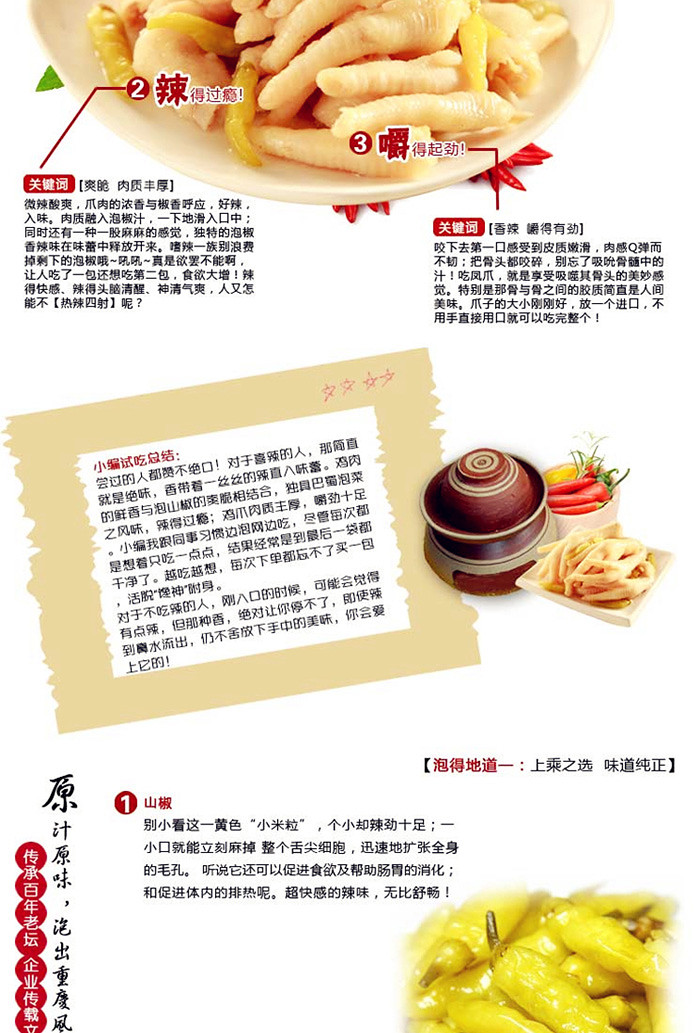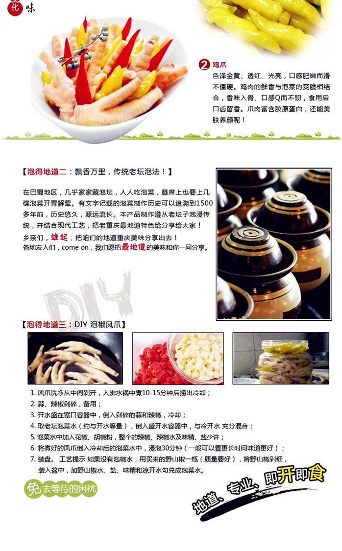 地道四川特產(chǎn),飄香萬(wàn)里,傳承百年老壇,38元一包 750g 30個(gè)鳳爪,鮮香滋味激活味蕾,滿足您的舌尖享受~中通,僅限江浙滬~24小時(shí)內(nèi)發(fā)貨~