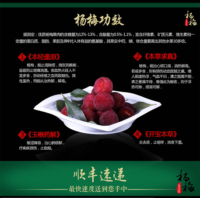 中國十大精品楊梅,綠色食品A級認證。3斤裝,順豐全程冷鏈,全國配送,6月3日左右發(fā)貨,48小時到貨;前50名減15元