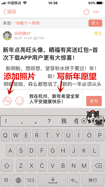 3、點(diǎn)亮頭像后,通過(guò)19樓APP在本帖后跟帖,曬一張“福”字照片+今年你在哪過(guò)年,新年最大愿望是什么?(如果能說(shuō)說(shuō)愿望背后的小故事獲獎(jiǎng)概率將成倍上升)