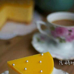 14、6小時后取出慕斯蛋糕進行脫模(這個步驟忘記拍了,腦補一下吧),拿吹風機熱風檔吹模具四周,模具一熱,就自然會掉下來,也可以用手托住底部往上頂,就脫出來了,表面簡單裝飾一下,可以放水果,或者多余的奶油,自己發(fā)揮創(chuàng)意