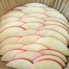 1、2個蘋果切成薄片,在鋪空氣炸鍋油紙盤中(或者在空氣炸鍋中鋪上一層油紙,邊緣要高出5cm)