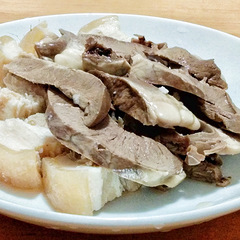 用糟鹵浸的五花肉、豬心,拼個(gè)冷盤,喝酒下飯,口感鮮美!糟鹵拼盤