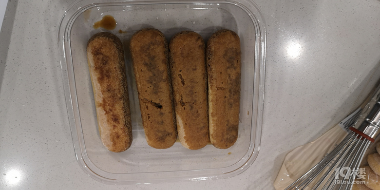 7.組裝:手指餅干浸泡咖啡液擺滿塑料盒底部,在餅干上倒上慕斯至看不見手指餅干,在擺放一層浸泡咖啡液的手指餅干,再到一層慕斯。冷藏三小時(shí)或冷凍一個(gè)半小時(shí)撒上過篩的可可粉。