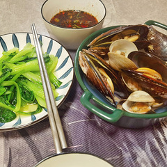 上次剩下的冬瓜總得燒燒掉,于是搞了盒骨頭一起燉湯,再炒盤青菜也蠻落胃的。