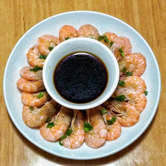 明蝦白灼,最為簡單,原汁原味,肉嫩爽口,調(diào)料蘸蘸,滿嘴生鮮。
