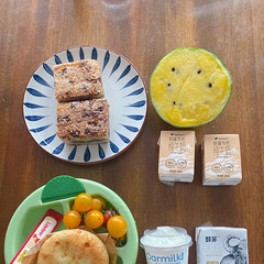 崽子:奶酪棒、紅豆卷、桃子、鮮奶、無糖酸奶