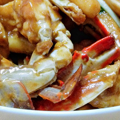 買來梭蟹,處理干凈,切段成形,面粉裹裹,油里炸炸,加料紅燒,味道鮮美!