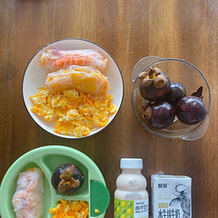 崽子:蝦仁蟹柳越南卷、炒雞蛋、山竹、水牛奶