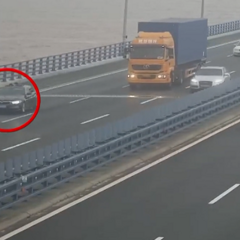 高速交警通過視頻追蹤確認(rèn),事情發(fā)生在10月3日17時31分,地點在杭州灣跨海大橋1391公里處。畫面顯示,一輛高速行駛的黑色轎車的天窗處,先后有兩人把頭伸出頂窗,前后時長20秒鐘。
