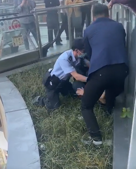 男子翻越護欄懸在半空 民警奮力一撲拼命拉住了他