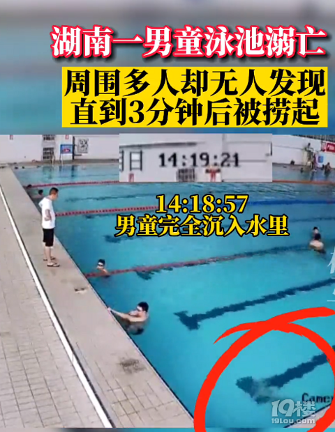 今天(8月15日),一條游泳館孩子溺亡的視頻,讓眾多網(wǎng)友非常痛心。 這條視頻時長三分多鐘,事發(fā)時間昨天下午,地點是湖南漣源,視頻內(nèi)容令人揪心—— 下午14:18分,游泳池里有不少孩子在水中游泳,一個小孩子從游泳池轉(zhuǎn)角的扶梯處跳下水,隨后在水里撲騰。 池邊上一個穿拖鞋的男子,全神貫注地看著水里一個戴泳鏡的孩子,貌似是個家長,并沒有留意到轉(zhuǎn)角所發(fā)生的一幕。 18分35秒,另一個孩子來到池邊,在相同位置