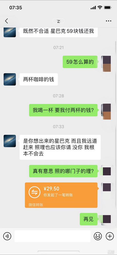 樓里姐妹面基見到這樣的男人[/11笑哭] 這TM是什么雞賊摳男? 明知不合適了還要撈一杯咖啡的錢[/11偷笑]女生又不缺約會對象,憑什么浪費時間給要在一杯咖啡上斤斤計較的男人?計較的人,我連朋友都不會做,何談戀愛關系。這種談起來怕不是惡心至極。如果找的對象以形式上的男女平等為要求,去達到自己利益的最大化,這種男的一定極度自私自利。換句話說,連一頓飯一杯咖啡都要計較的,不應該去找對象,應該去找份體面